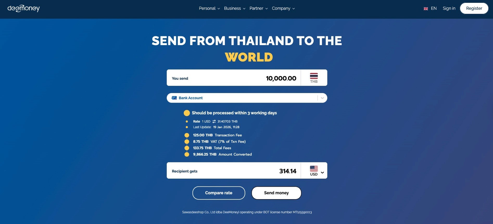 Sawasdeeshop Co., Ltd (dba DeeMoney) operating under BOT license number MT125590013